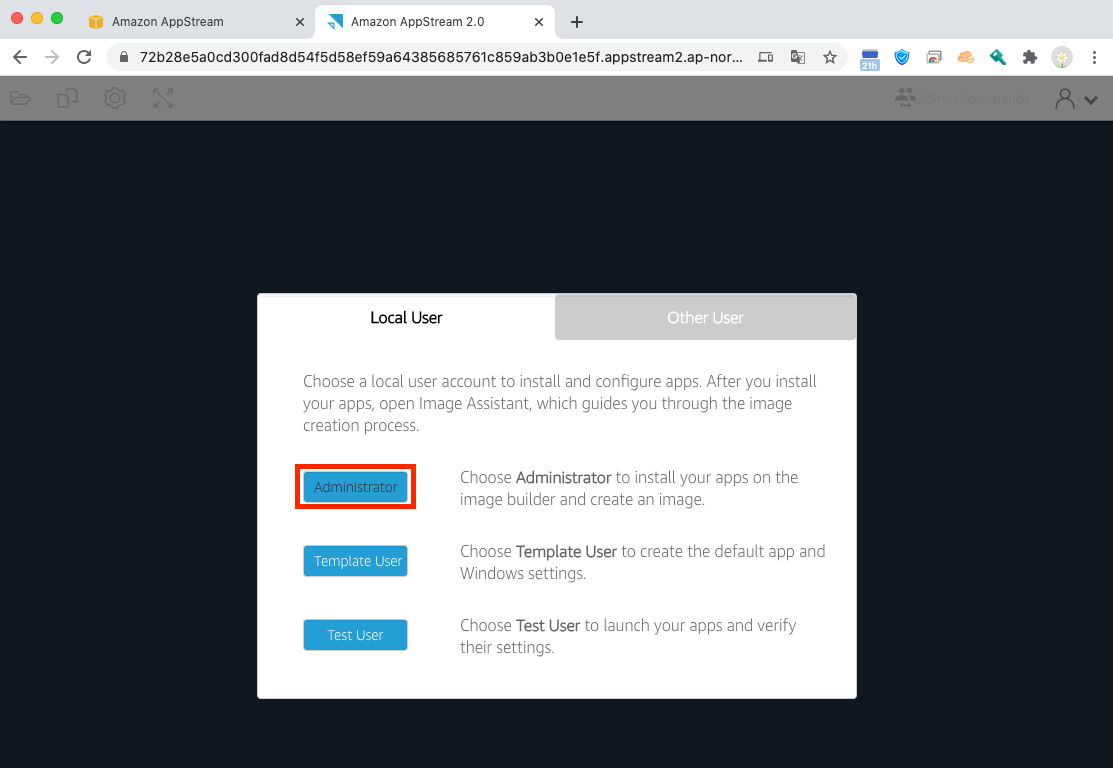 Administrator 권한으로 Image Builder에 접속합니다.