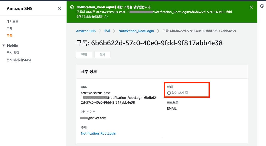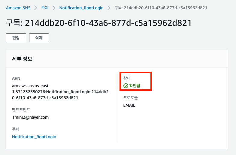 이제 Amazon SNS에서 해야할 작업을 모두 완료하였습니다.